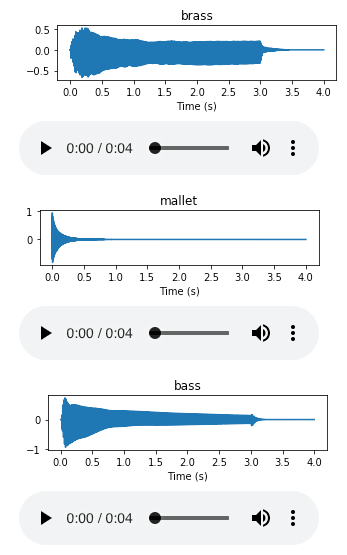 sample_rate = 16000For the rest of this post, I've used the NSynth Dataset by the Magenta team at Google. It is an interesting dataset composed of 305,979 musical notes, each 4 seconds long. I trimmed the dataset down to only the acoustically generated notes to make things a little more manageable. The goal was to classify which instrument family each note was generated with out of 10 possible instrument families.